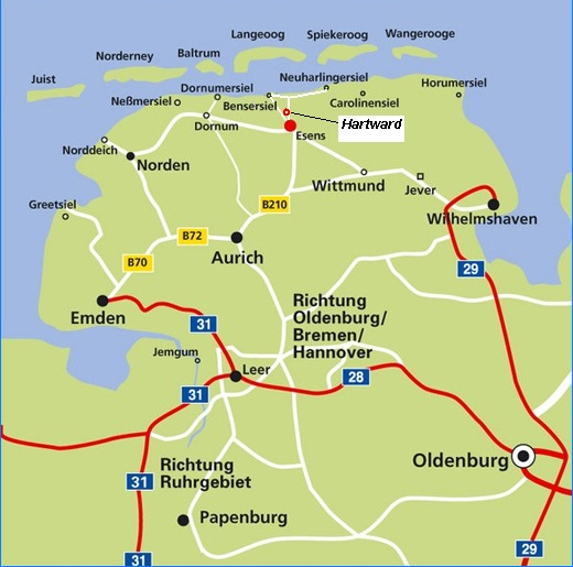 - In Aurich auf die Bundesstraße B 210 in Richtung