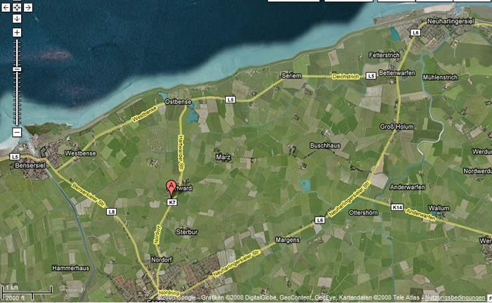 - Nach der Ampelkreuzung links ab, in Richtung Bensersiel..